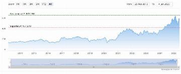 En Goldman Sachs Gr las medias móviles de 70 y 200 periodos se mantienen debajo de las últimas velas, RSI al alza en los 57 puntos y las líneas del MACD encima del nivel de cero.